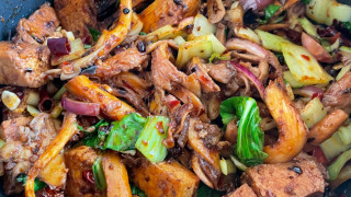 Knoblauch, Ingwer und Zwiebel schälen und fein schneiden.
